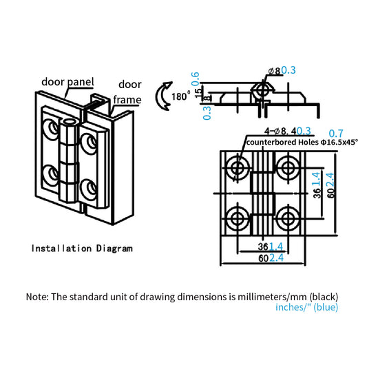 Door Hinge Cabinet Hinge Flat Bifold for Doors Hardware Marine grade Heavy Duty JL233B-1