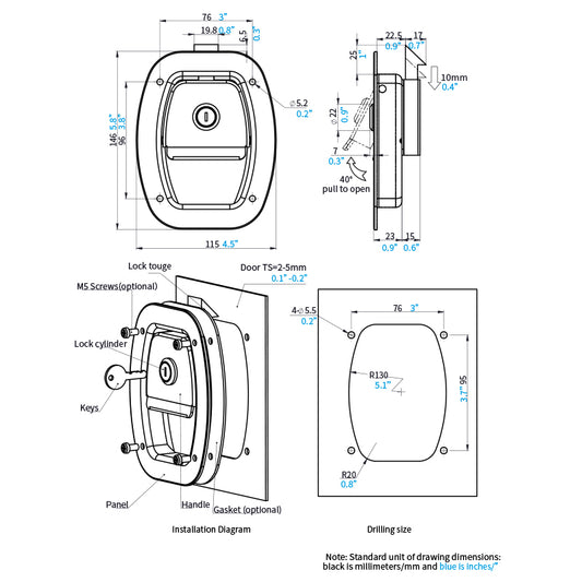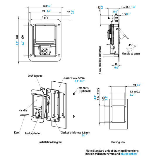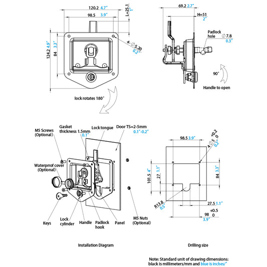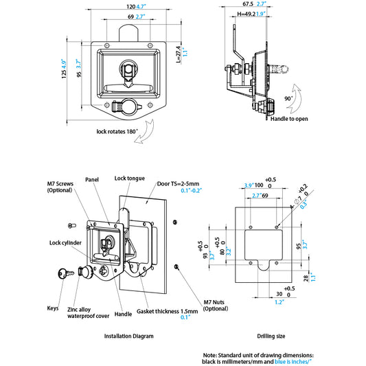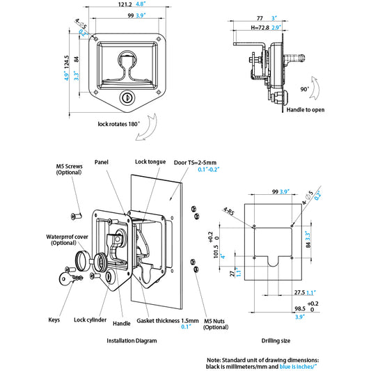 MS858R RV Tool Box Latch Replacement T-Handle Lock Single Point Flush Mount Foldable Camper Handle Lock