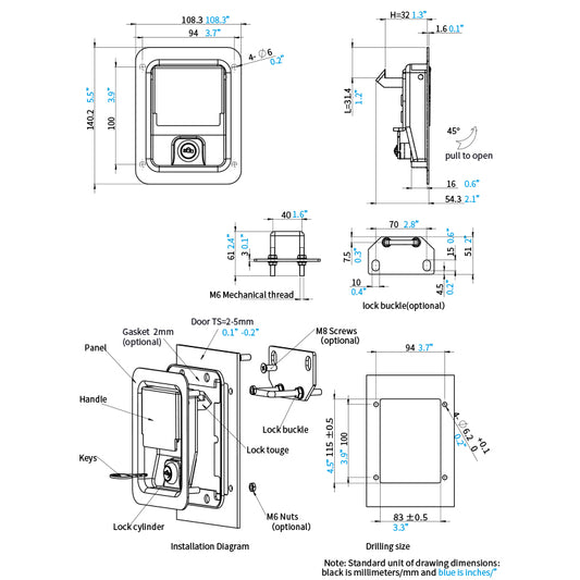 MS866-4 Truck Tool Box Latch Replacement, Flush Mount Paddle Lock Samll Size, Pull Handle Lock